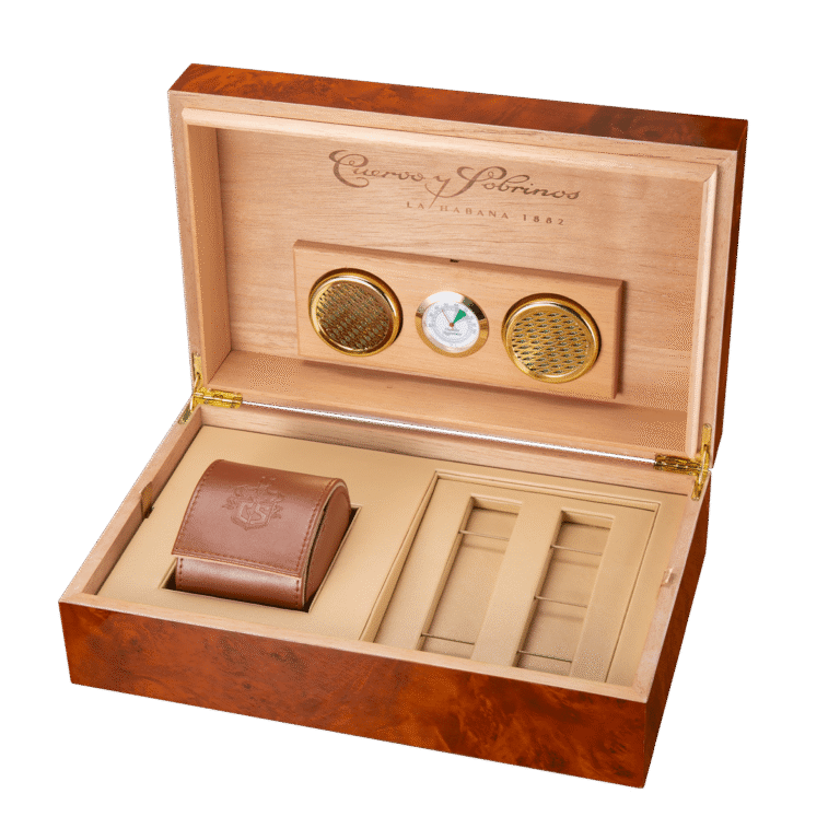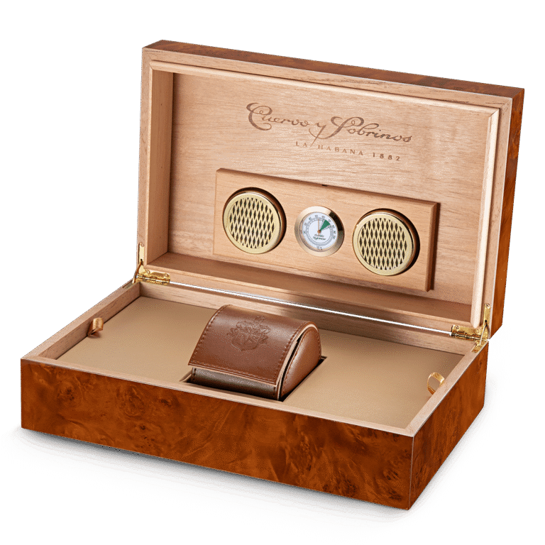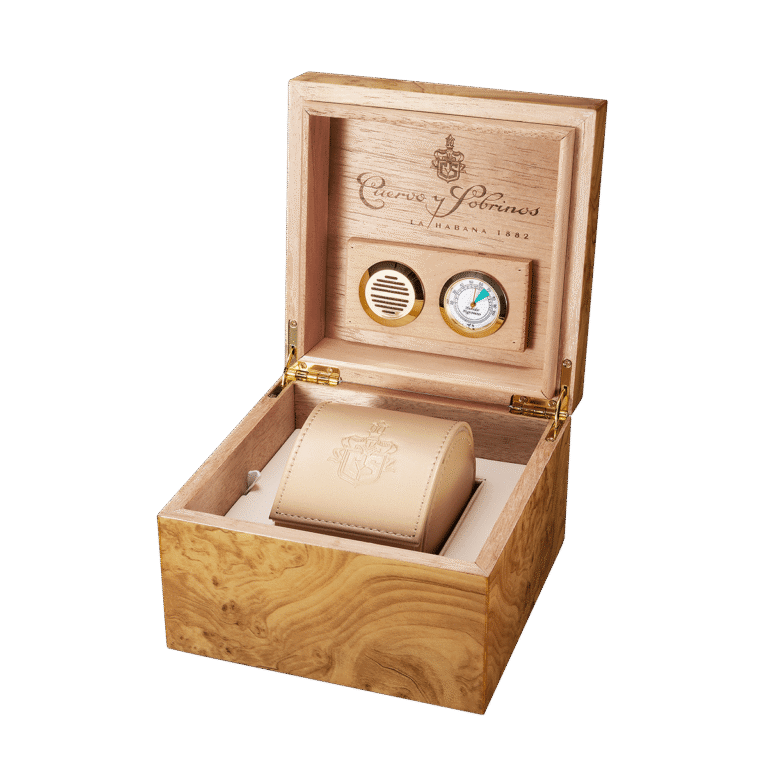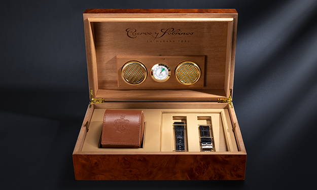 Cuervo y Sobrinos har skabt tre typer humidorer til at ledsage hvert nyt ur. Alle æskerne er lavet af cedertræ, et træ der er perfekt egnet til at bevare tobak og udvikle cigarsmage.